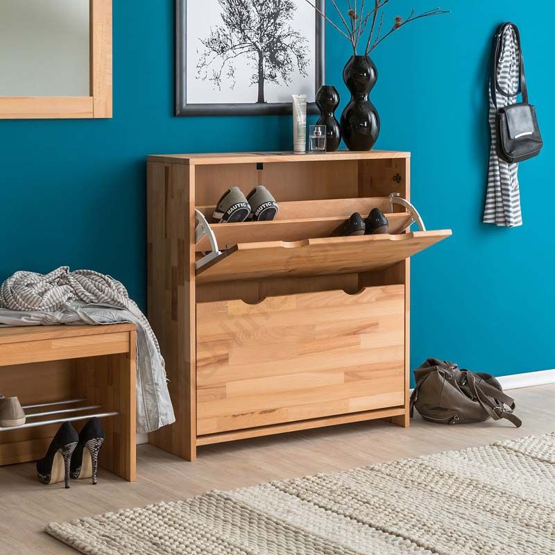 Дерев’яна тумба для взуття з двома відкидними дверцятами.