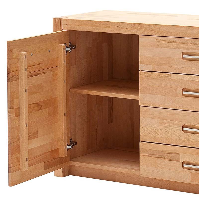 Дерев’яна тумба з чотирма висувними шухлядами та двома дверцятами.