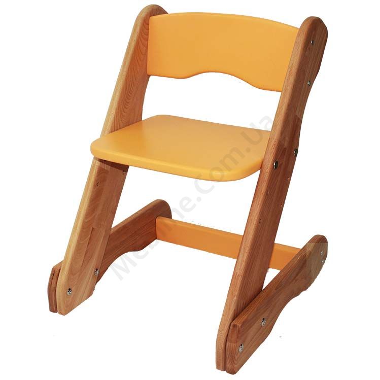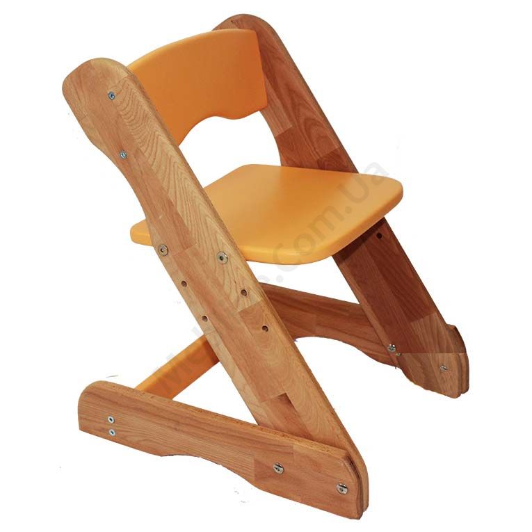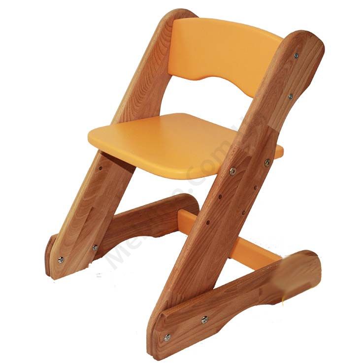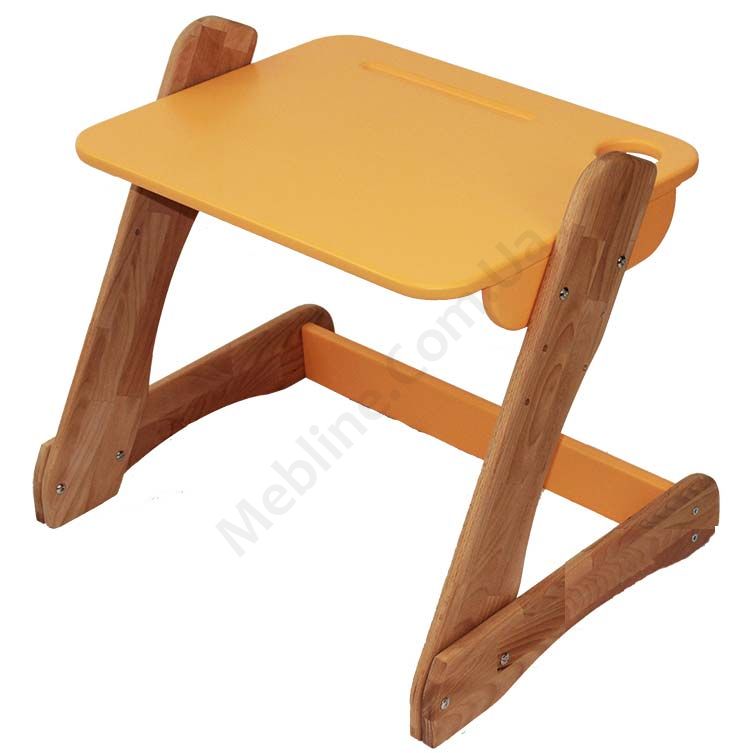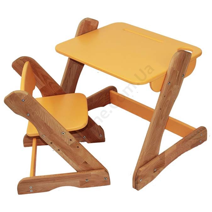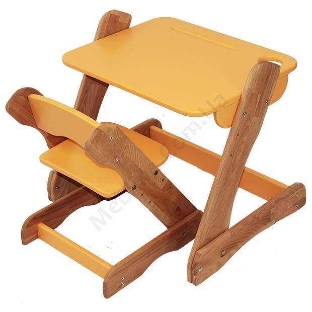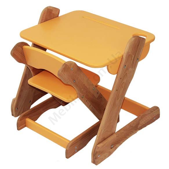 Помаранчевий дерев’яний столик зі стільчиком з регулюванням висоти.