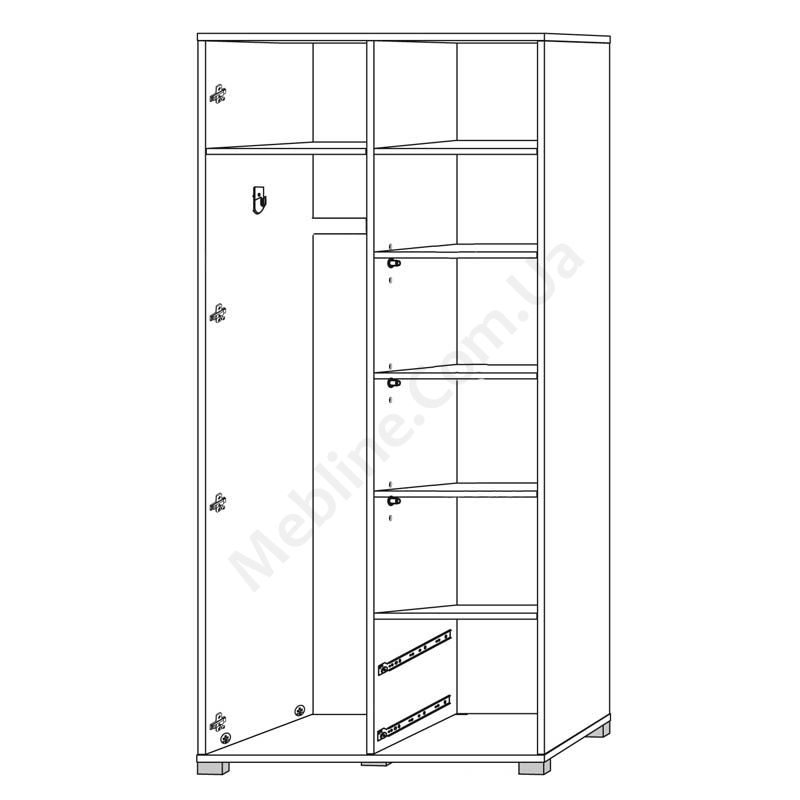 Дводверна шафа з висувними шухлядами, штангою та полицями.
