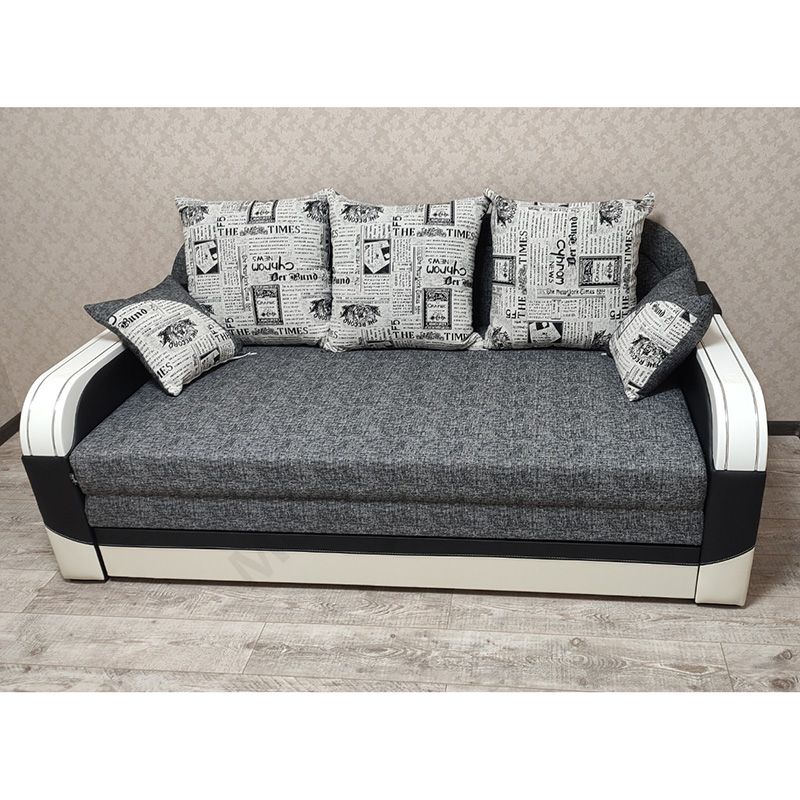 Диван з підлокітниками, великими подушками та коробом для білизни.