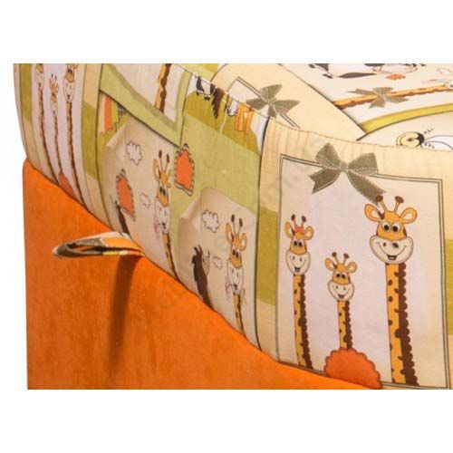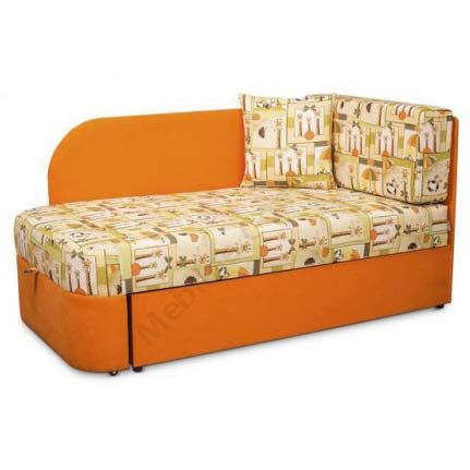 Розкладний дитячий диван з ящиком для білизни та одним підлокітником.
