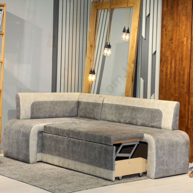 Розкладний кухонний куточок без підлокітників з коробом для зберігання.