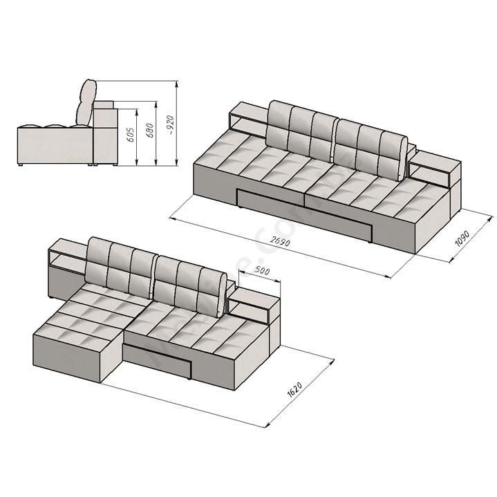 • Наповнення дивана - пружинний блок та пінополіуретан підвищеної щільності