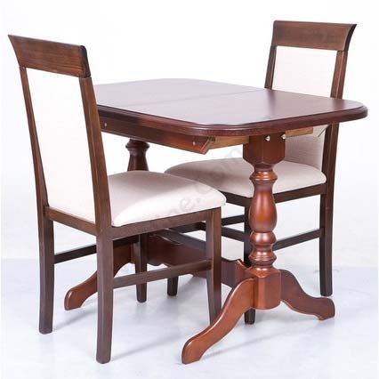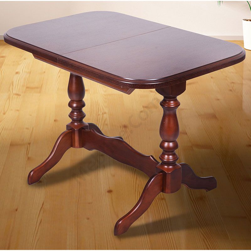 Розкладний обідній стіл на фігурних ніжках із натурального дерева.