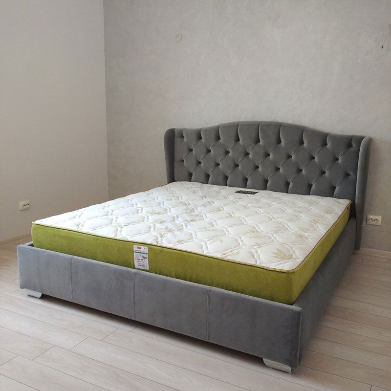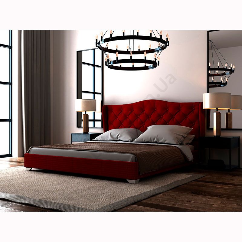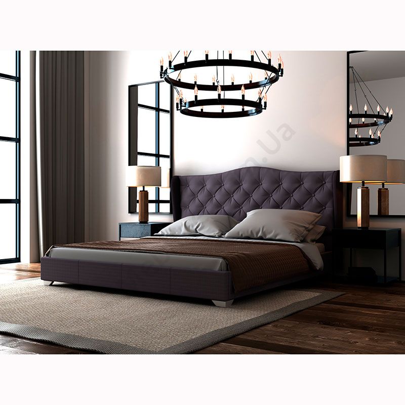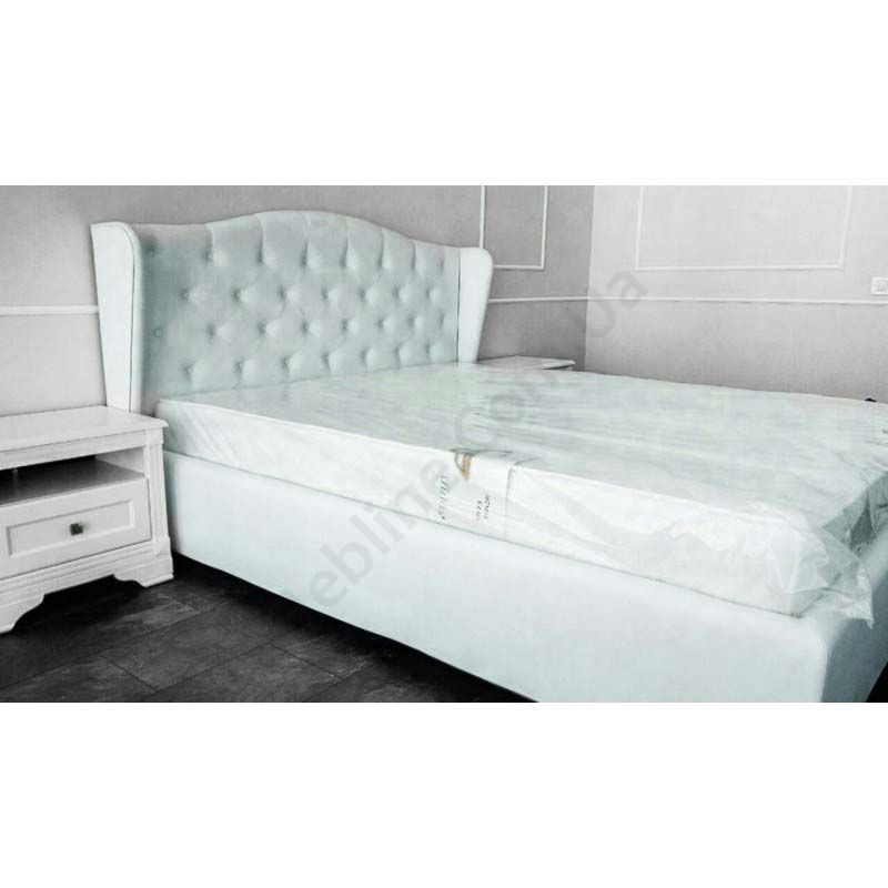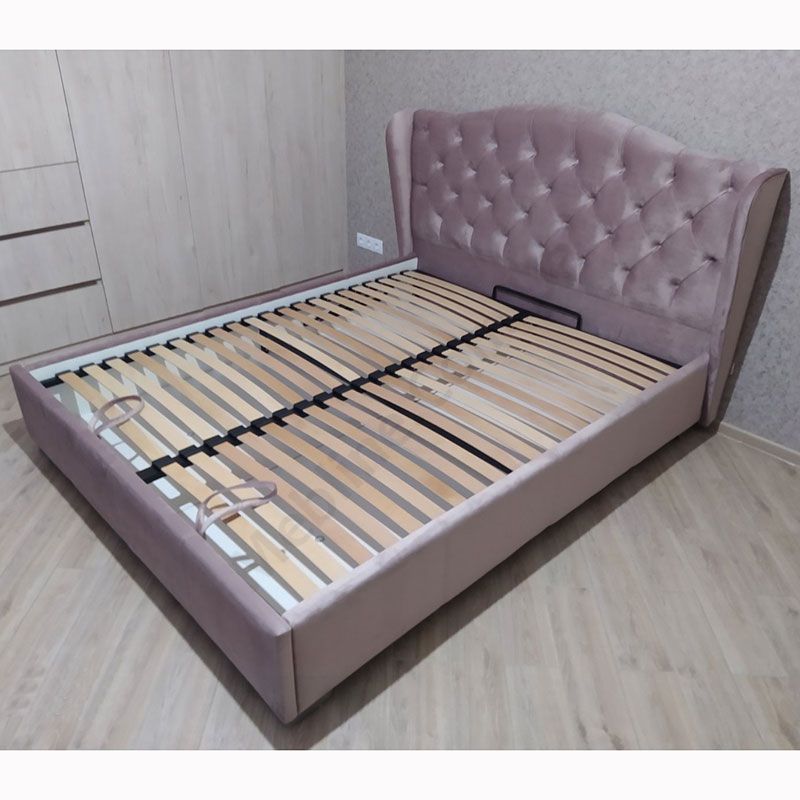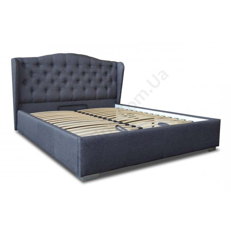 Двоспальне ліжко з узголів’ям з каретною стяжкою та підйомним механізмом.