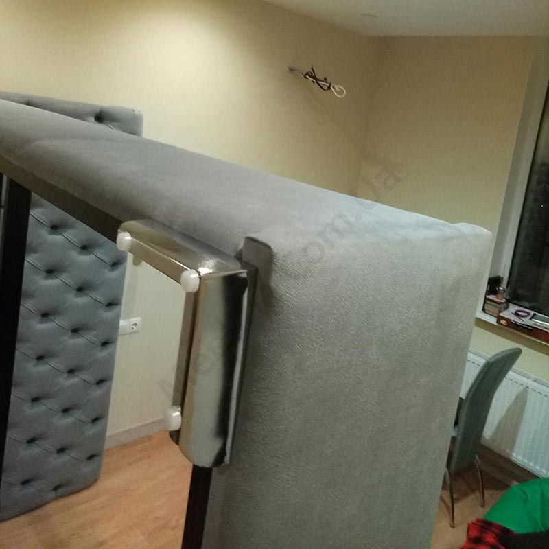 Ліжко з закругленим узголів’ям з каретною стяжкою та підйомним механізмом.