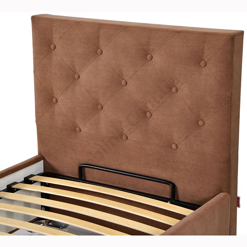Односпальне ліжко з узголів’ям простібаним ромбами з використанням декоративних гудзиків.