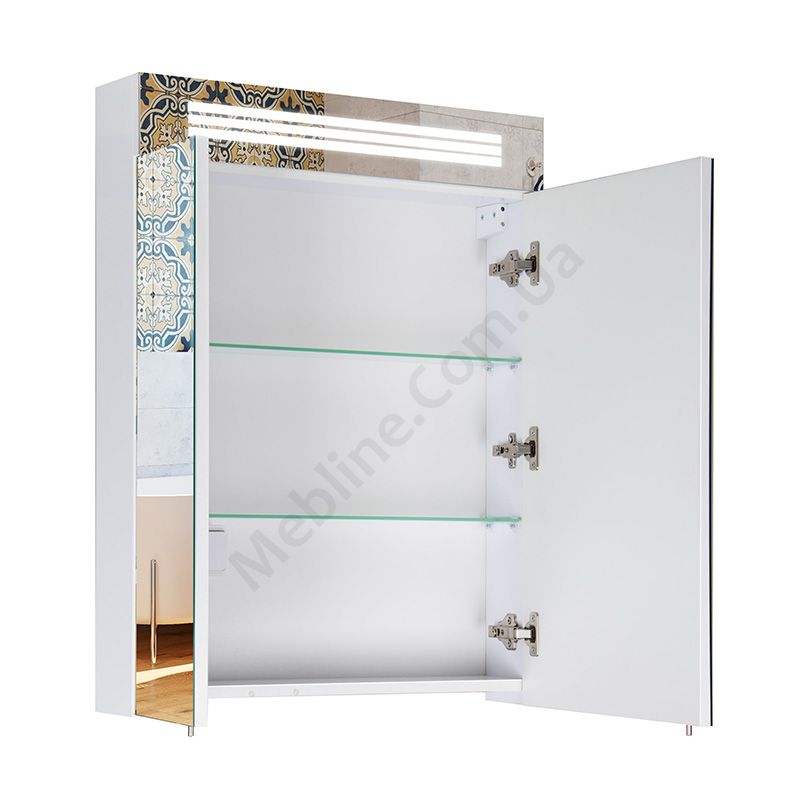 Навісна дзеркальна шафка для ванної з підсвічуванням.