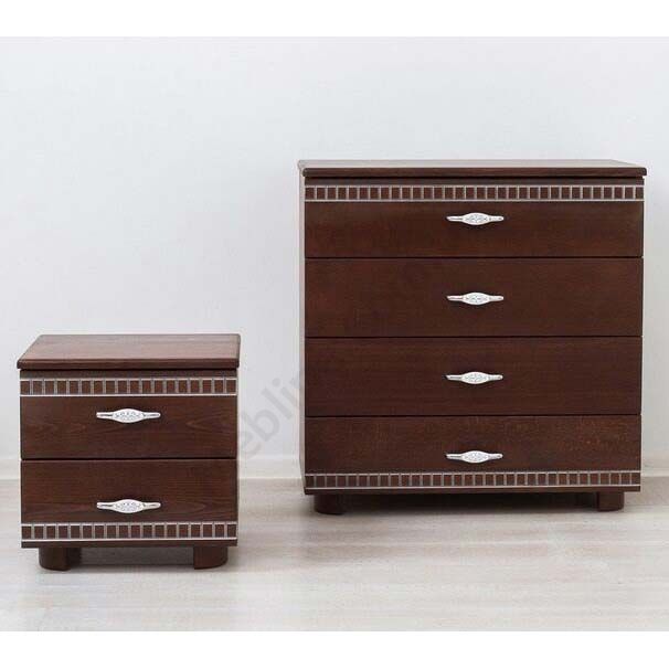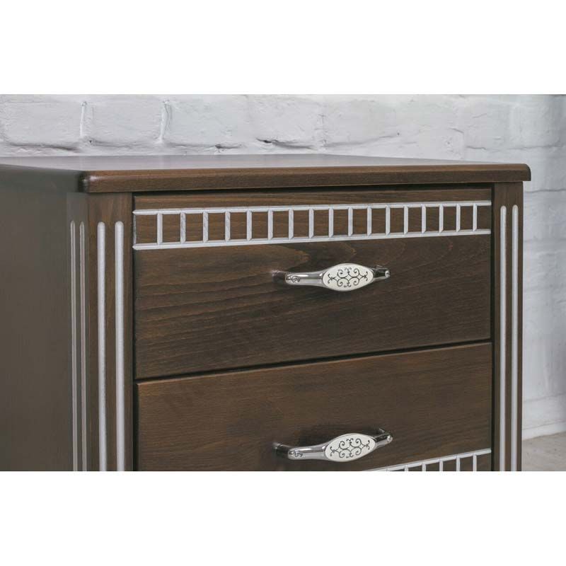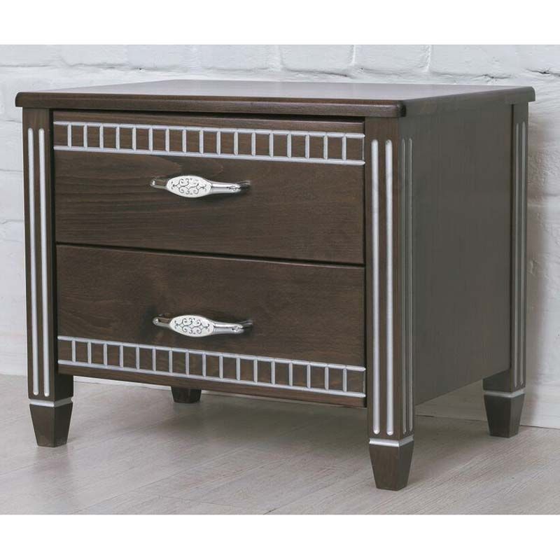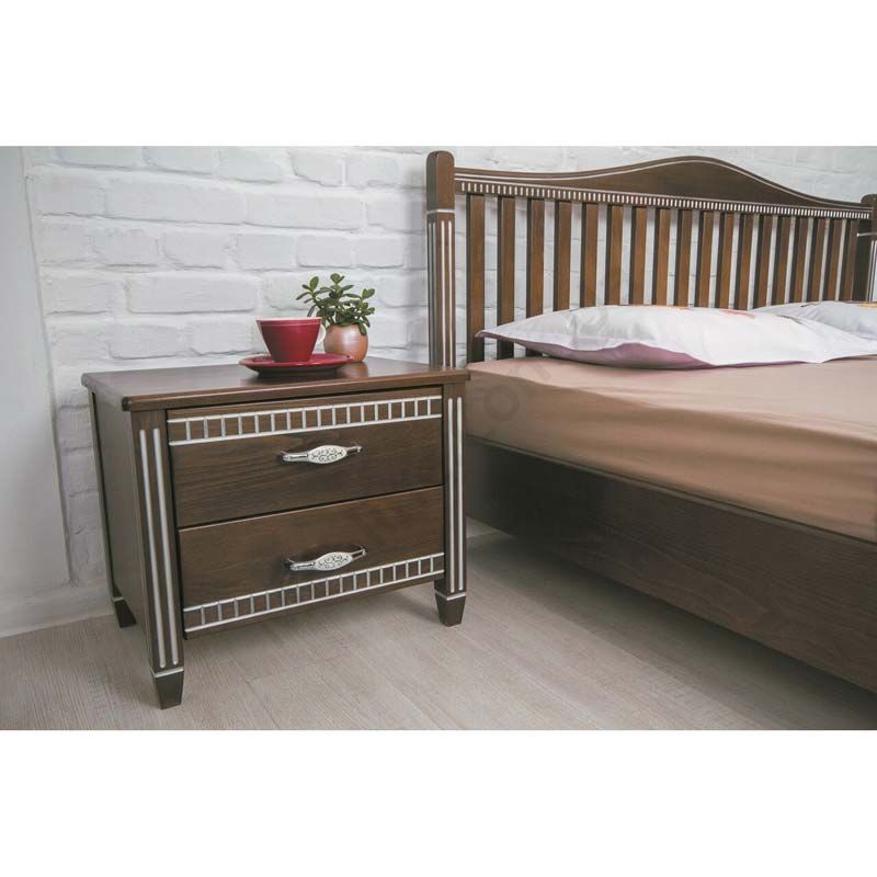 Дерев’яна приліжкова тумба з двома шухлядами та фрезеруванням.
