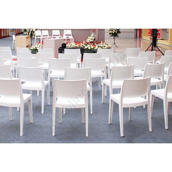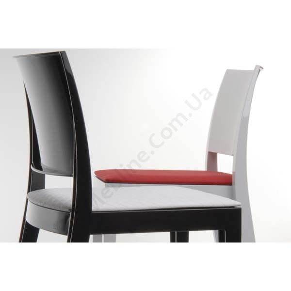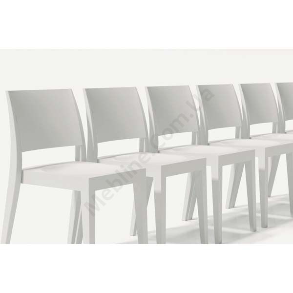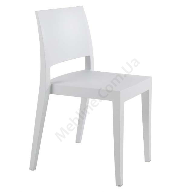 Пластиковий матовий стілець зі спинкою білого кольору.