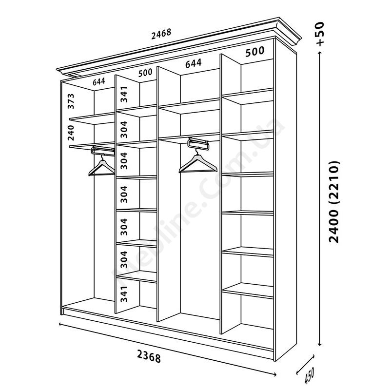 - Шафи можуть бути висотою 2400 або 2200 на вибір.