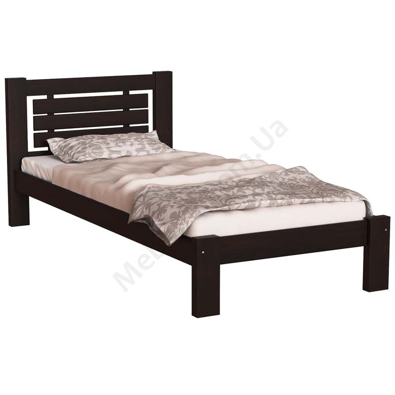 Односпальне ліжко на ніжках з натурального дерева з прямим узголів’ям.