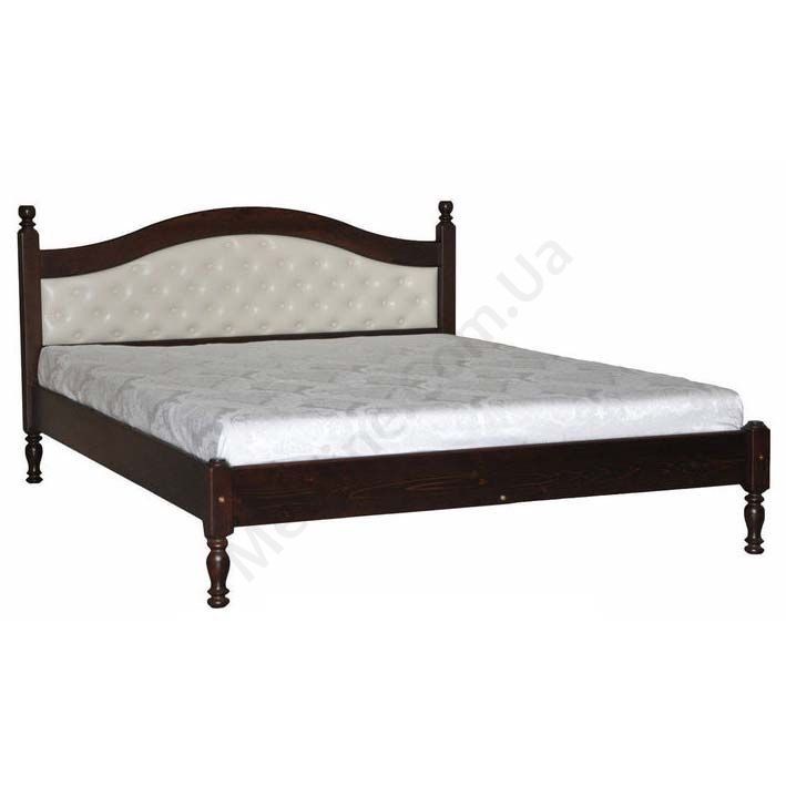 Двоспальне ліжко з натурального дерева на ніжках з м’яким фігурним узголів’ям.
