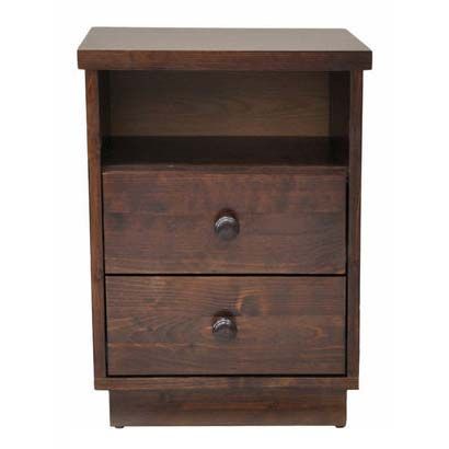Приліжкова тумба з натурального дерева з двома висувними шухлядами та відкритою полицею.