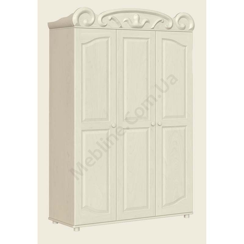 Тридверна дерев’яна шафа зі штангою для одягу та поличками.