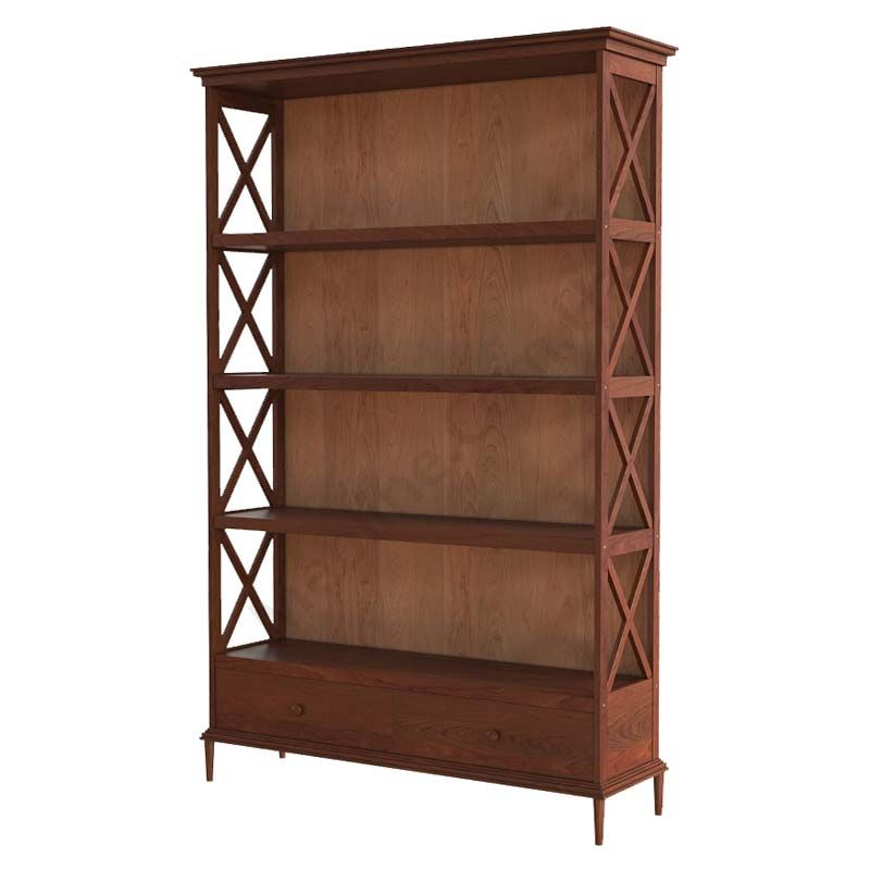 Етажерка з натурального дерева з чотирма полицями та висувною шухлядою.