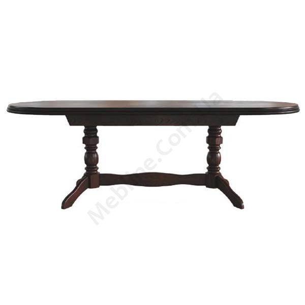 Овальний розкладаний обідній стіл з натурального дерева на різьблених ніжках.