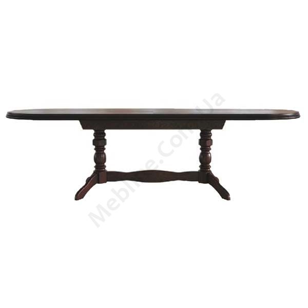 Овальний розкладаний обідній стіл з натурального дерева на різьблених ніжках.