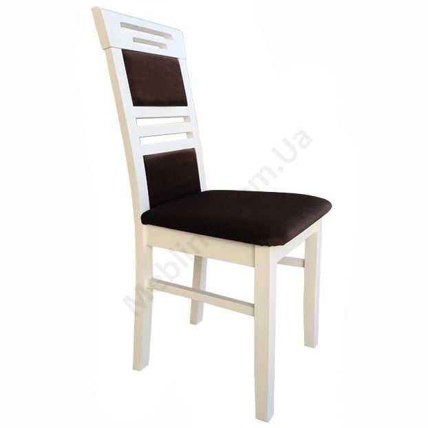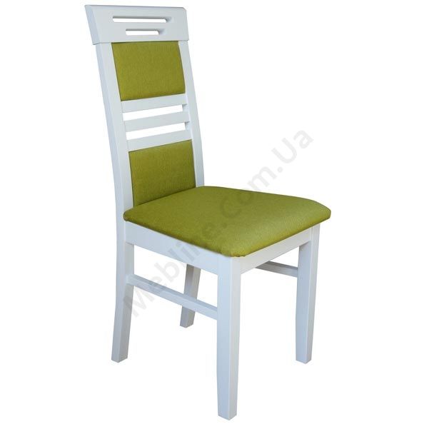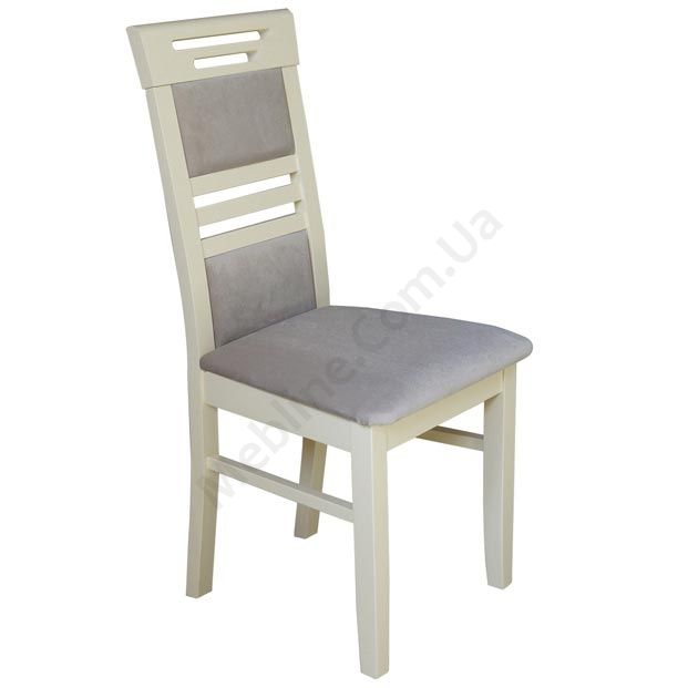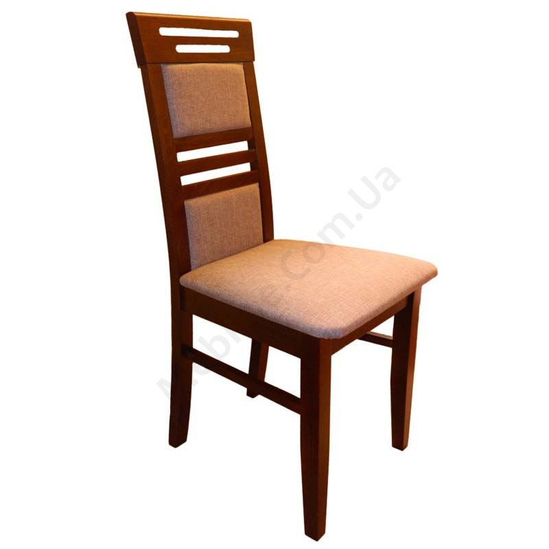Стілець з натурального дерева з м’якою оббивкою та високою спинкою.