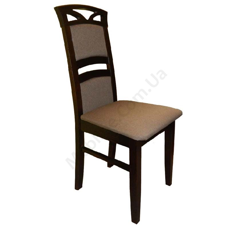 Стілець з натурального дерева з м’якою оббивкою та високою спинкою.
