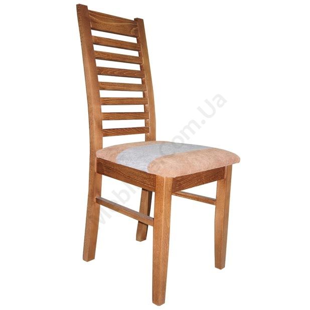 Стілець з натурального дерева з м’якою оббивкою сидіння.