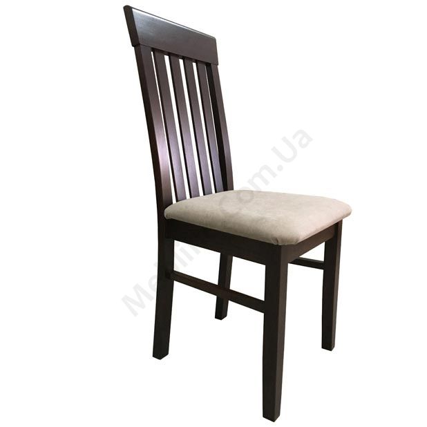 Стілець з натурального дерева з м’якою оббивкою сидіння.