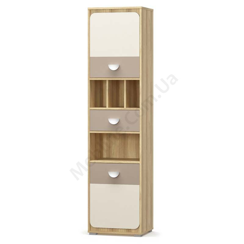 Пенал з висувною шухлядою, відкритими полицями та дверцятами.