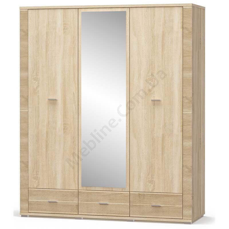 Платтяна шафа з дзеркалом, полицями та висувними шухлядами.