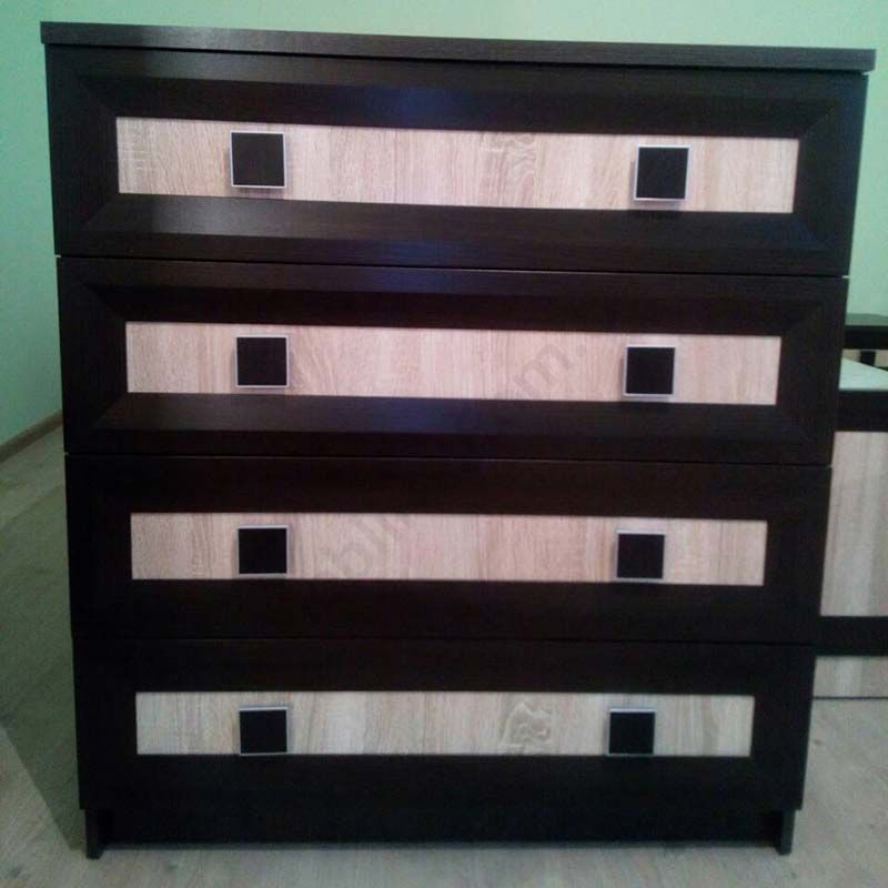Комод з чотирма висувними шухлядами та декоративними ручками.