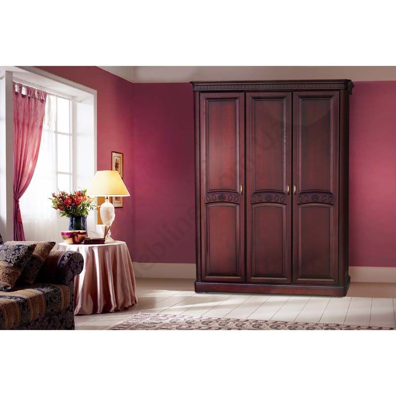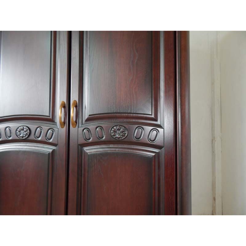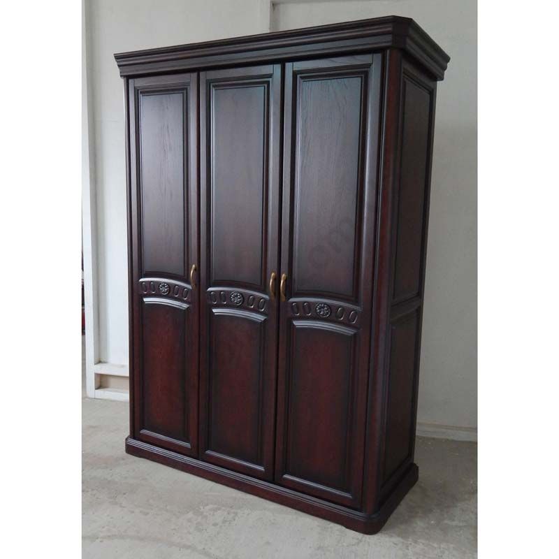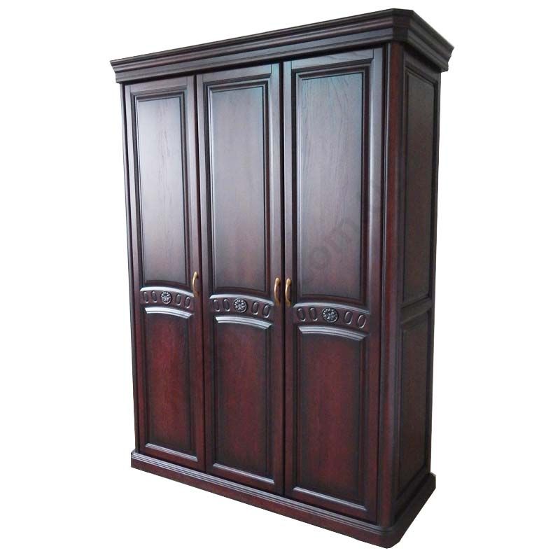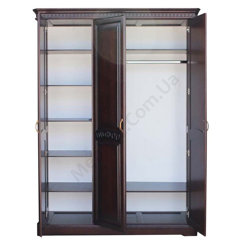 Дубова тридверна шафа зі штангою для одягу та полицями.