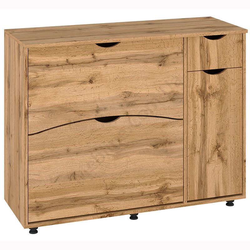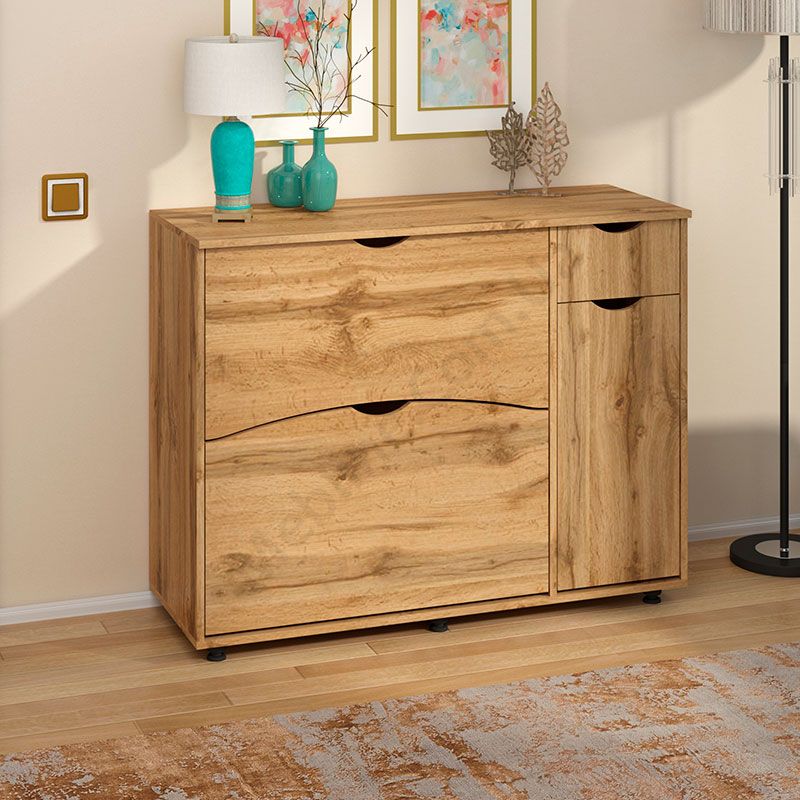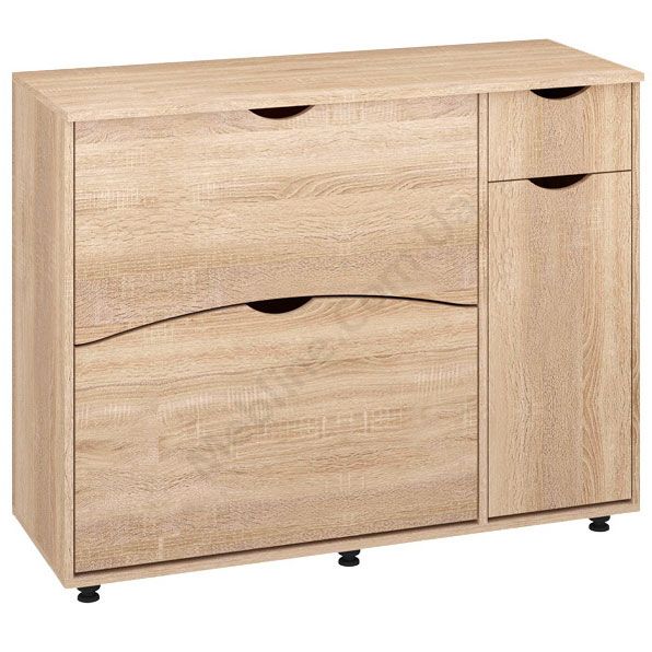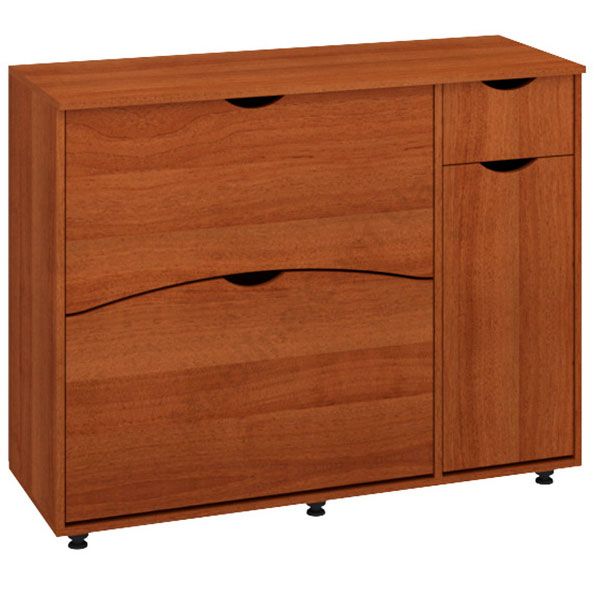 Тумба для взуття з двома відкидними дверцятами і висувною шухлядою.