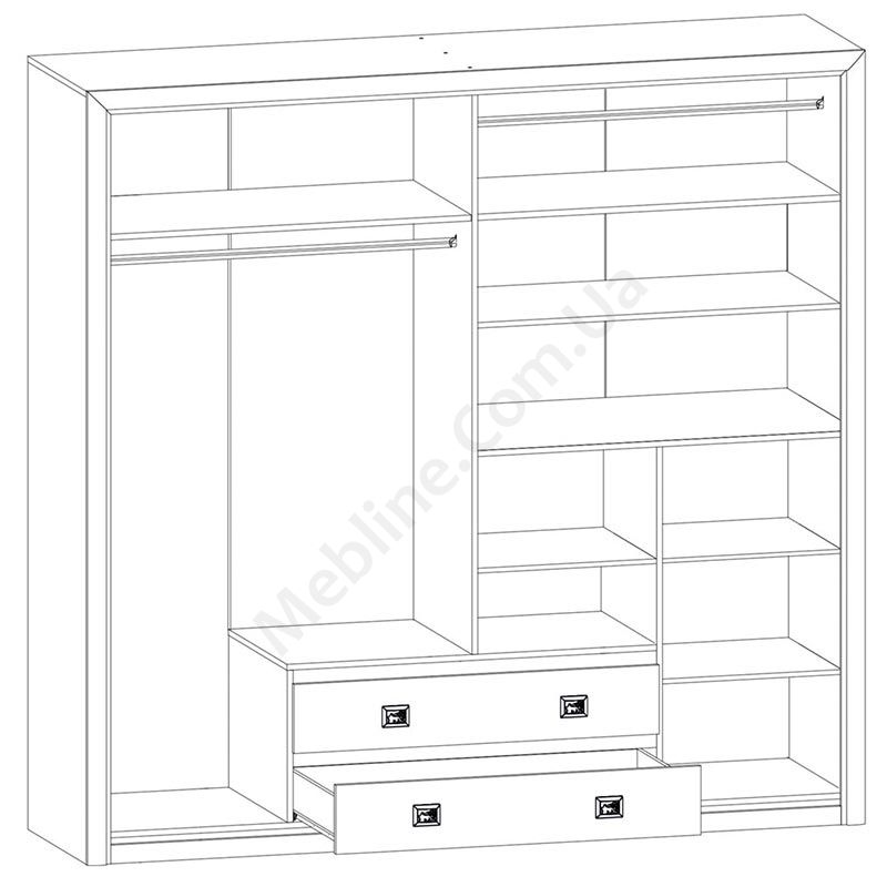 - За лівими дверцятами штанга для одягу та верхня полиця.