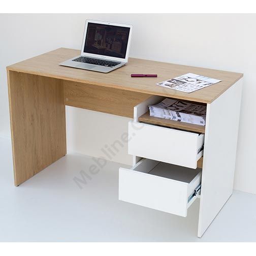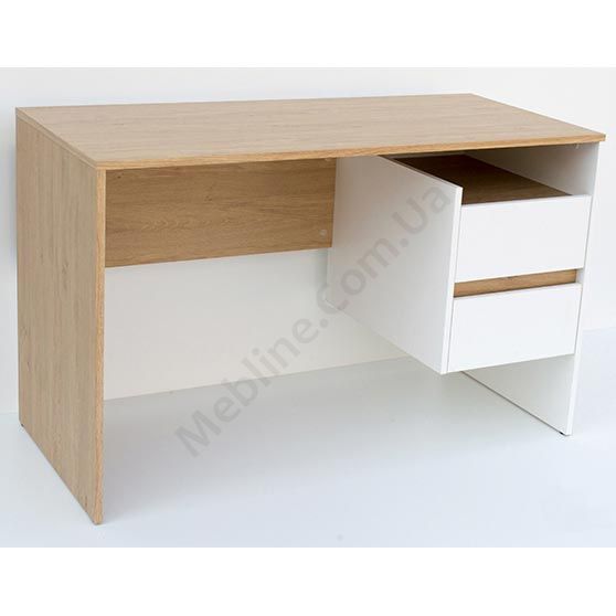 - Під стільницею дві висувні шухляди та відкрита полиця.