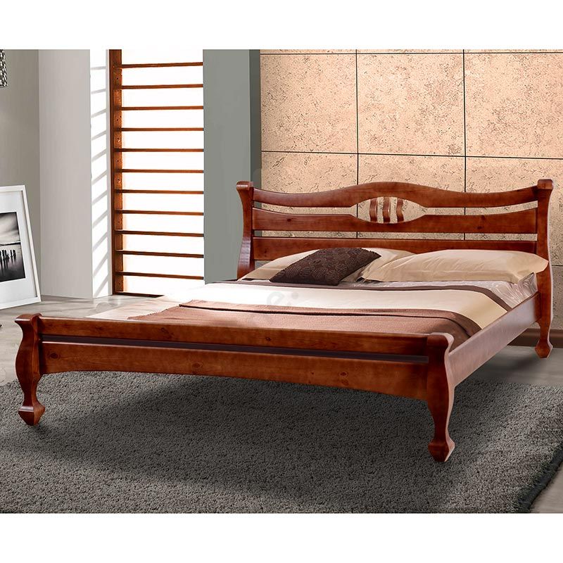 Двоспальне дерев’яне ліжко на фігурних ніжках із вигнутим твердим узголів’ям.