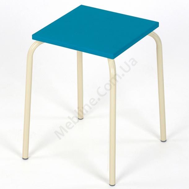 Квадратний табурет м’ятного матового кольору на металевому каркасі.