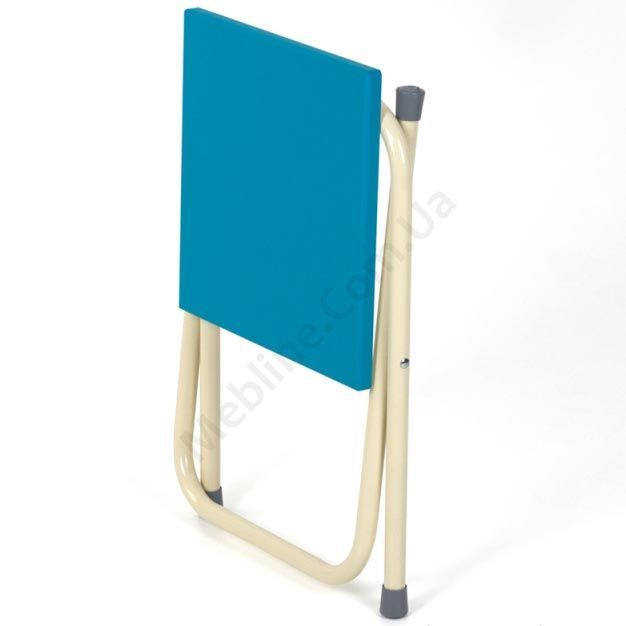 Складаний табурет м’ятного кольору на металевому каркасі.