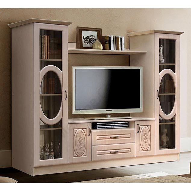 Стінка в вітальню з вітринами та тумбою під телевізор.