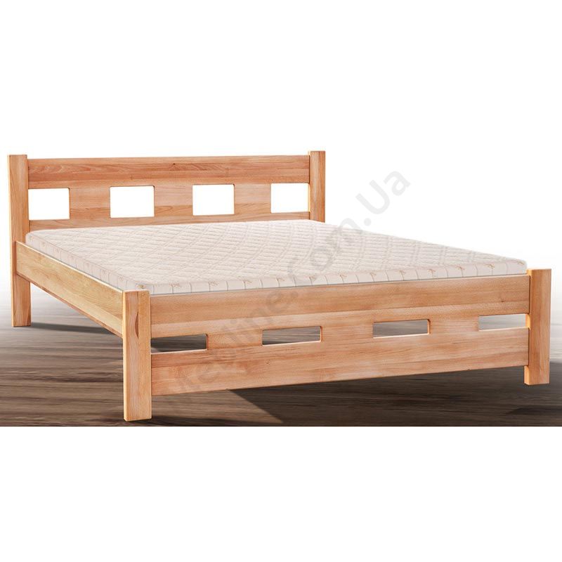 Двоспальне дерев’яне ліжко на ніжках з твердим узголів’ям, натурального кольору.