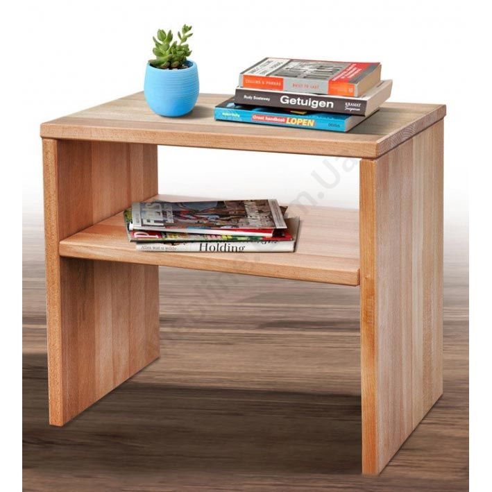 Дерев’яна приліжкова тумба з полицею.