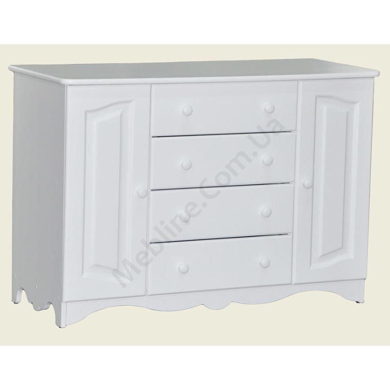 Комод з натурального дерева з чотирма висувними шухлядами та дверцятами.