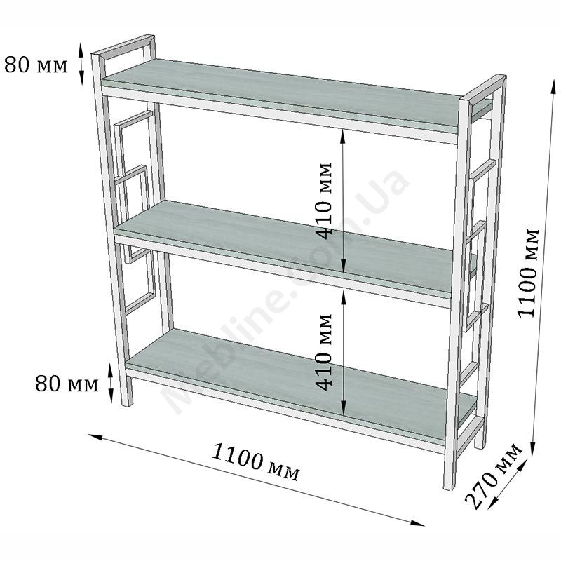 Стелаж 3 полички Лонг Квадро Лофт - Металл-Дизайн