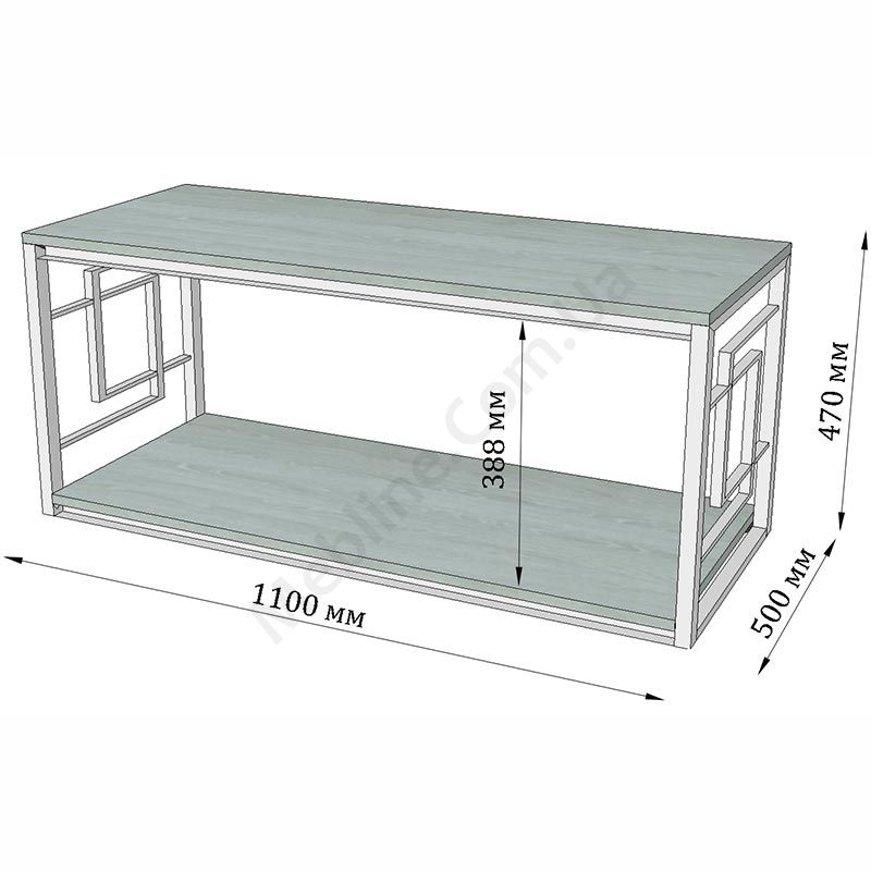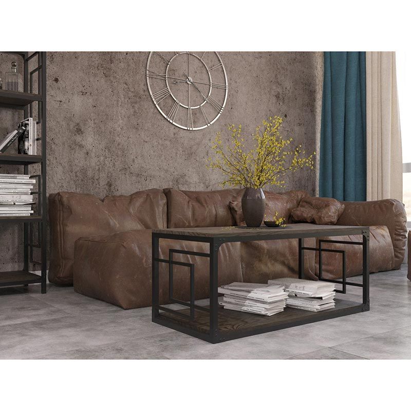 Журнальний стіл у стилі Лофт з металевим корпусом та полицею.