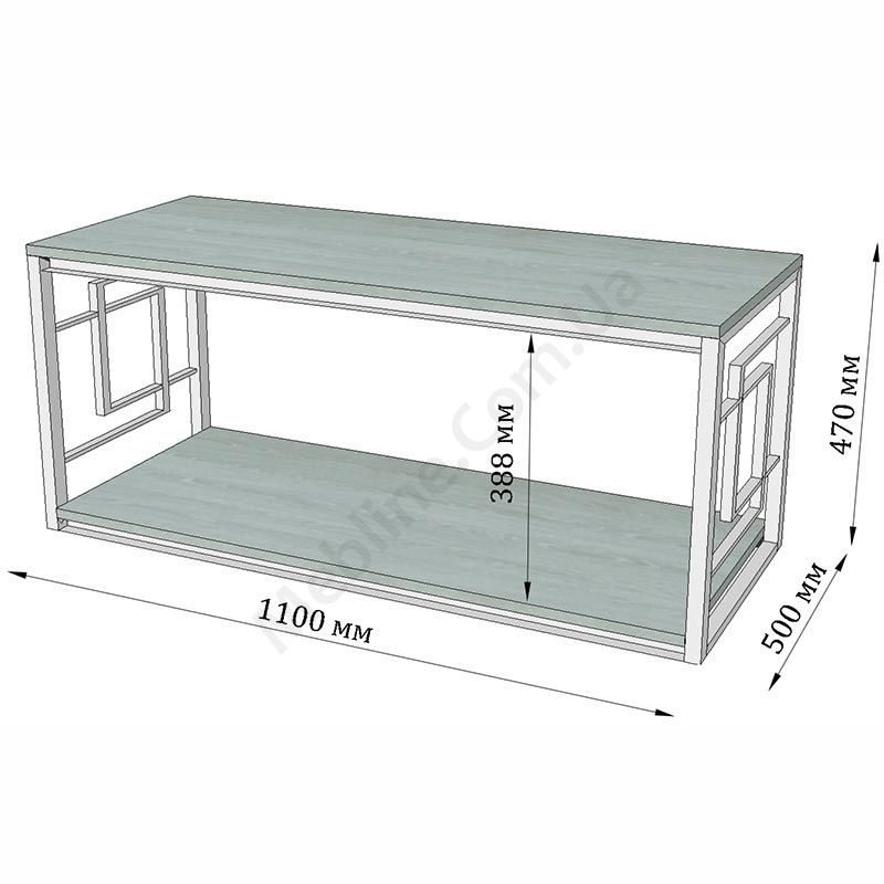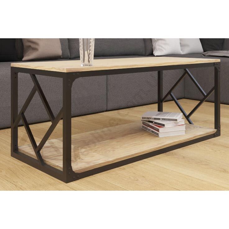 Журнальний стіл у стилі Лофт з металевим корпусом та полицею.
