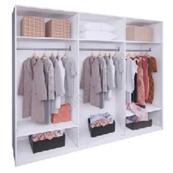 - За дверцятами три штанги для одягу та п’ять полиць.
