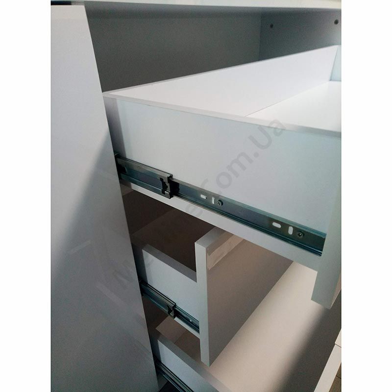 - Шухляди на шарикових телескопічних напрямних повного висуву.