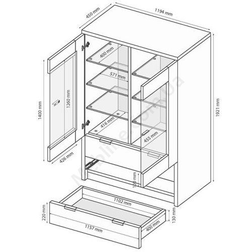 - Двоє розпашних дверцят зі скляними прозорими вставками.