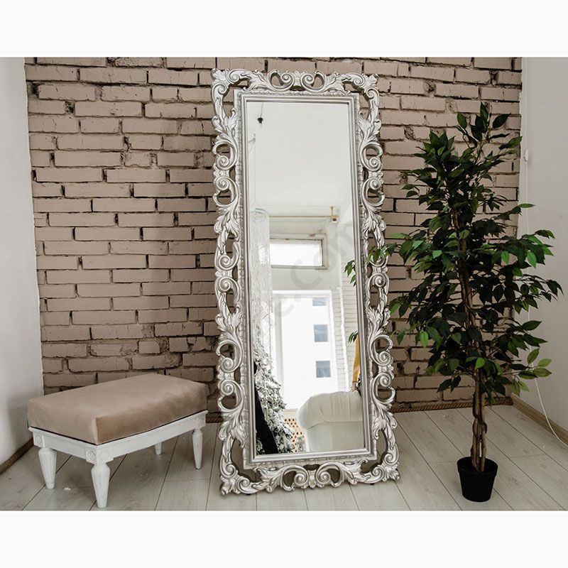 Дзеркало в гарній фігурній рамі срібного кольору.