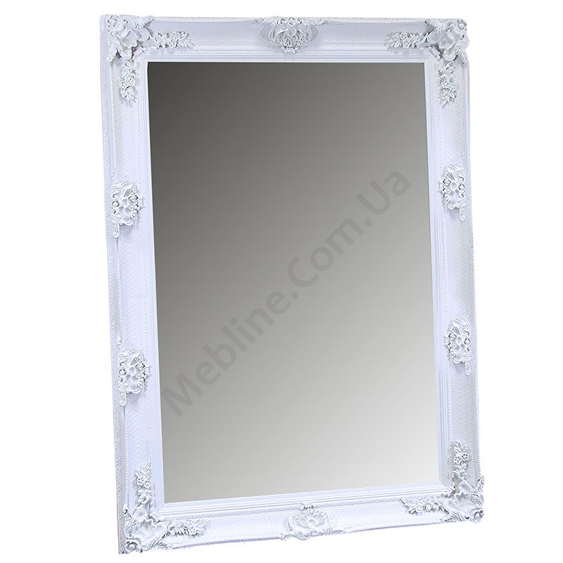 Дзеркало в гарній прямокутній рамі білого кольору.