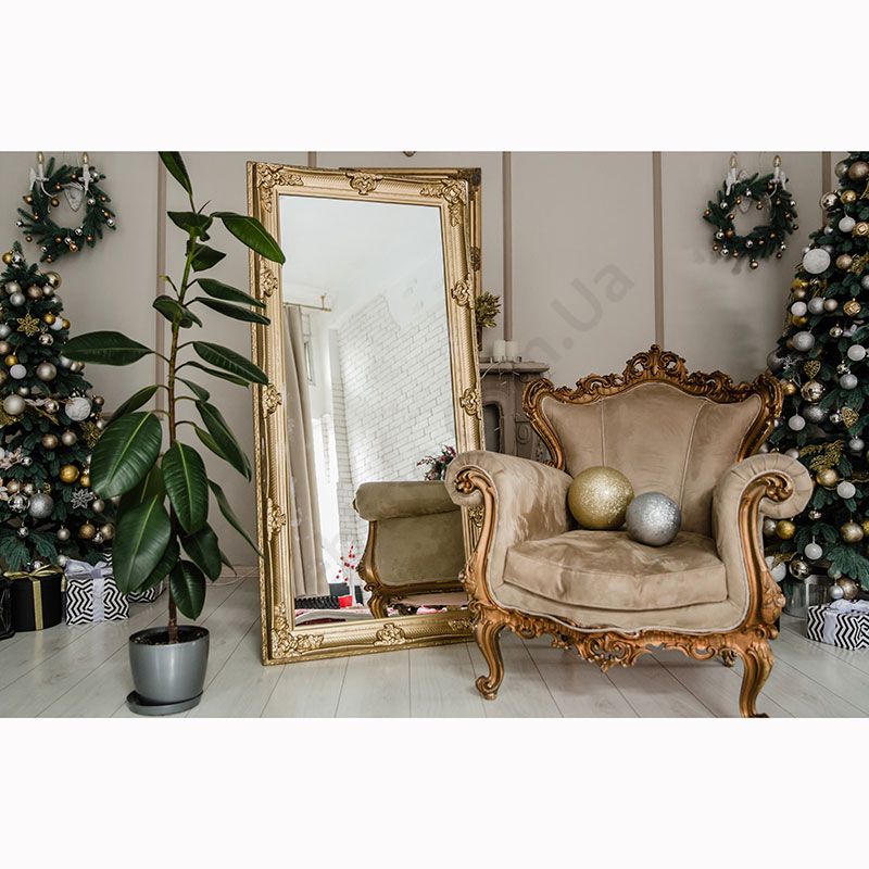 Дзеркало в гарній прямокутній рамі золотого кольору.